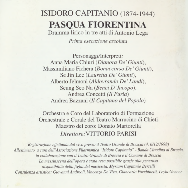 Artistic Consultant to the CD recording of Isidoro Capitanio’s