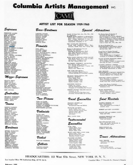 San Francisco. The autumn season is due to open on September 12 and will continue until October 23; American debuts will be made by Eugenia Ratti, Sebastian Feiersinger, Ernest Blanc, Rolando Panerai, Keith Engen, Giuseppe Modesti and Arnold van Mill; and local debuts by Lisa della Casa, Christel Goltz, Joan Moynagh, Irene Dalis, Grace Hoffman, and Cecilia Ward. The company further includes Leyla Gencer, Leontyne Price, Leonie Rysanek, Elisabeth Schwarzkopf, Sylvia Stahlmann, Claramae Turner; Jussi Bjorling, Richard Lewis, Gianni Raimondi, Eugene Tobin, Frank Guarrera, Ralph Herbert, Giorgio Tozzi and Lorenzo Alvary. The conductors will be Jean Fournet (American debut), Leopold Ludwig (American debut), Francesco Molinari-Pradelli and Glauco Curiel.