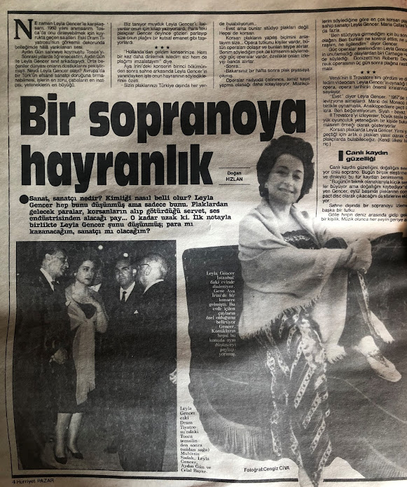 (Leyla Gencer, bu yazıdan dört yıl sonra 1988 yılında Devlet Sanatçısı oldu)